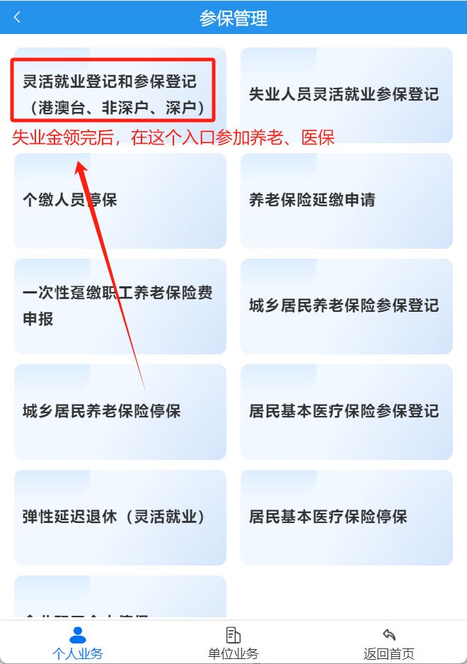 深圳失业金领取人员参加社保,主要是参加养老保险,医疗保险由失业保险基金代缴一档。线上参保流程如下: