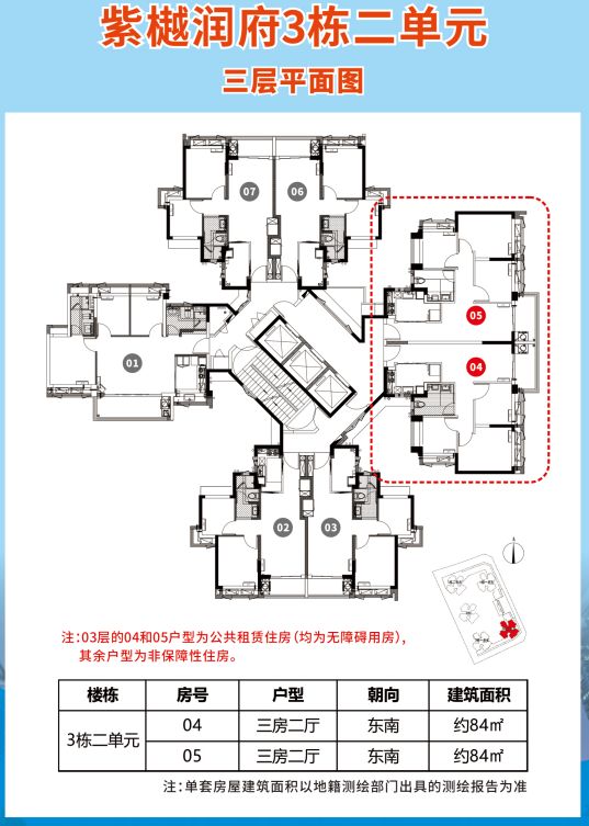 面积与适配:建筑面积约 84㎡,为本次配租项目中较大户型,优先面向5人及以上家庭配租(含2套无障碍用房),适合多子女家庭或三代同堂居住。
