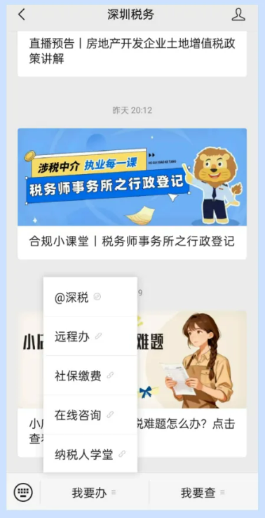 扫描下方二维码或在微信搜索公众号 “深圳税务”,关注后进入公众号主页面,点击【我要办】—【社保缴费】,进入登录页面。