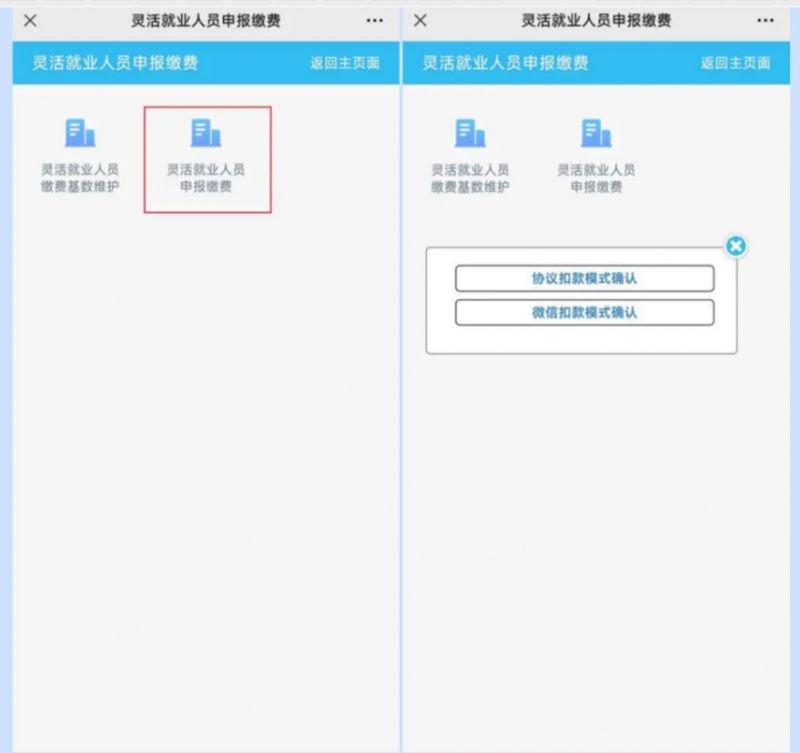 点击【灵活就业人员申报缴费】,选择缴费方式。
