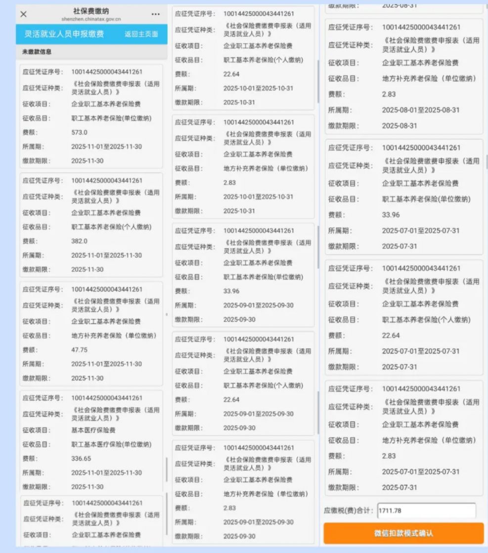 深圳灵活就业人员2025年7月至10月的缴费基数调整补差流程可以通过 “深圳税务”公众号办理,操作流程见正文。