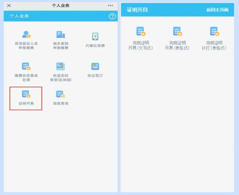 提示:缴费完成后,缴费人可点击主页面的【证明开具】模块开具社保费完税证明。
