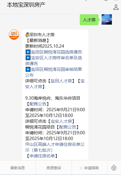 温馨提示:微信搜索公众号【本地宝深圳房产】,关注后,在对话框发送【人才房】可获取人才房每日最新消息、人才房申请入口、配售公告等