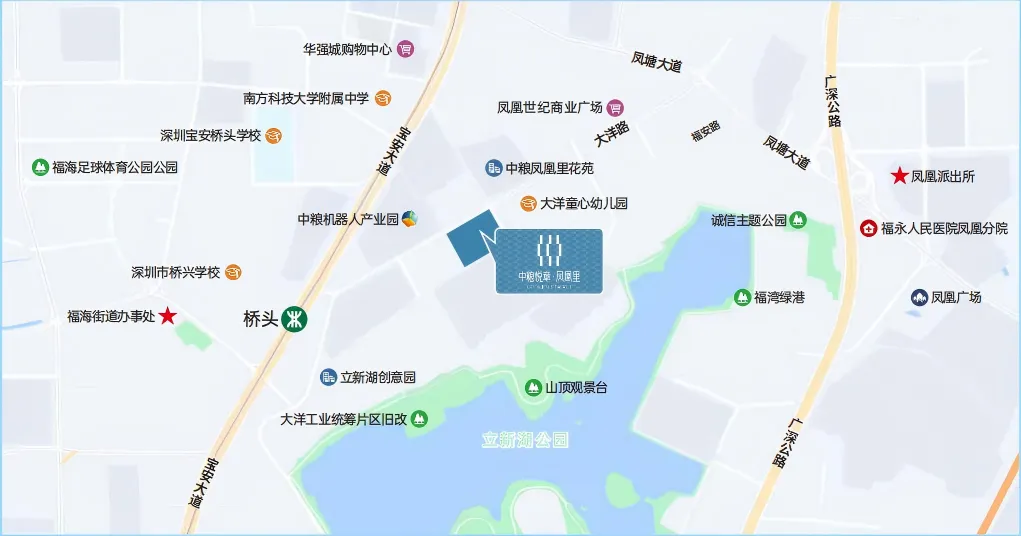 悦章凤凰里位于深圳市宝安区福海街道塘新路与大洋路交汇处西南侧,周围有学校有公园、地铁11号线桥头站,配套完善,临近宝安大道、广深公路,西侧广深沿江高速、东侧京港澳高速